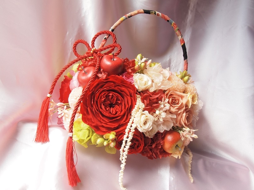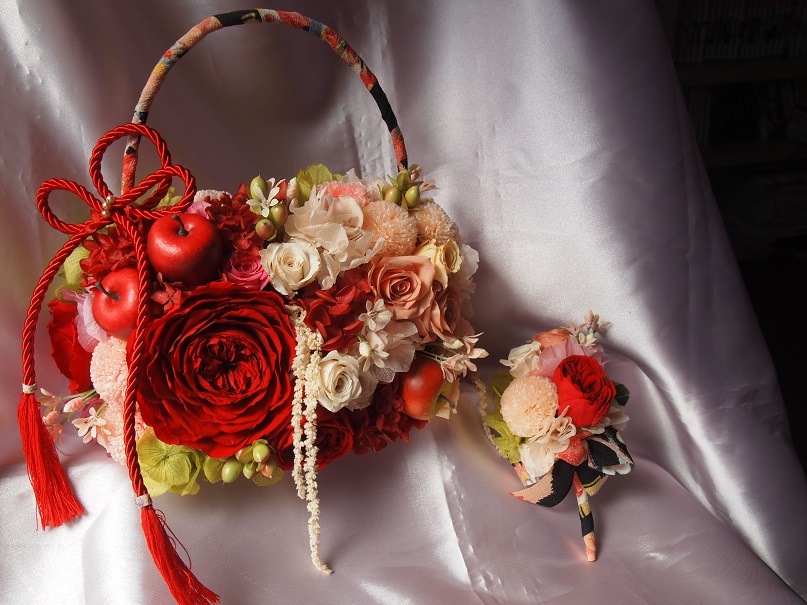 バックと底面は着物にピリザーブドフラワーの色が擦れて